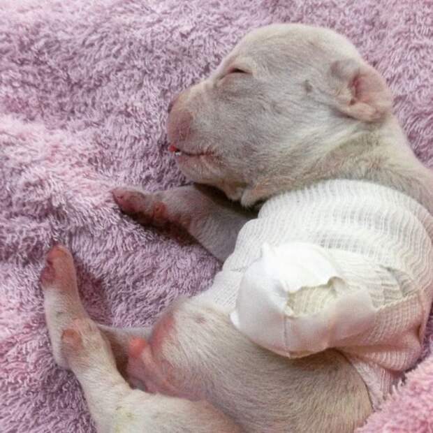 Посмотрите на фото этого малыша. Всего таких пёселей родилось 8 штук. К сожалению, не уцелела даже половина: поговаривают, что их мать была безумна и она – осторожно, шок-контент!