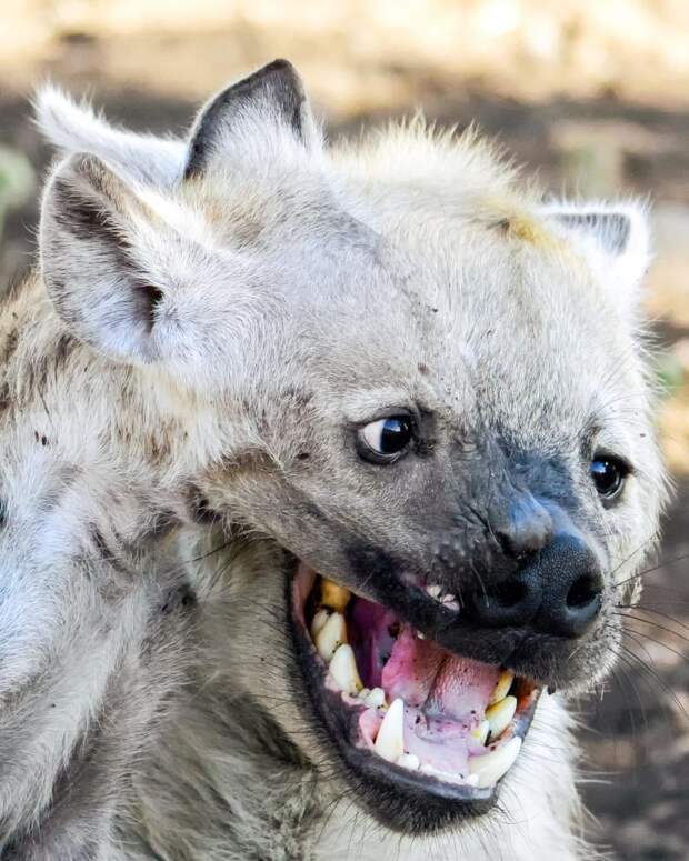 "Я сделал несколько снимков и лишь позже увидел, что на одном две морды гиены практически слились в одну. Получилось довольно неожиданно и это существо выглядит как большая немного косоглазая веселая гиена. Забавный случай на самом деле".