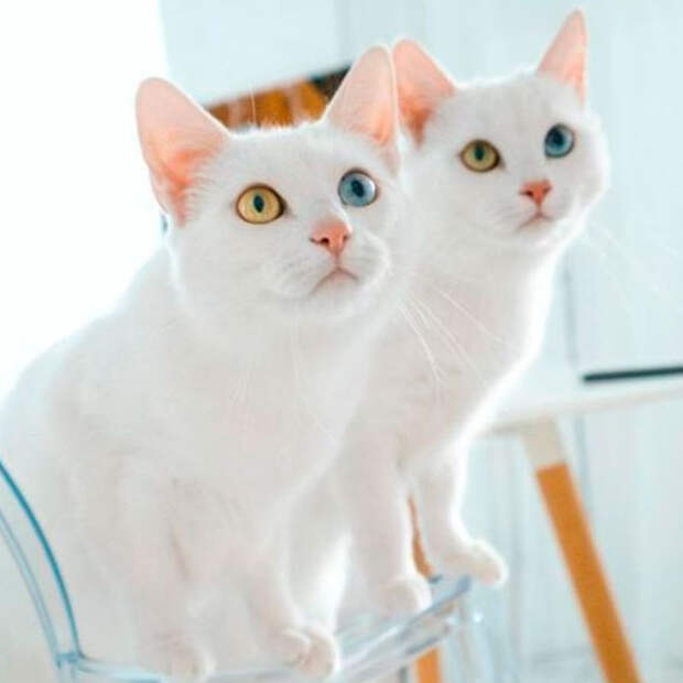 У обеих девочек гетерохромия. Правые глазки голубые, а левые — желтенькие. Настоящее чудо природы! И эта особенность встречается в основном у кошек белого окраса.